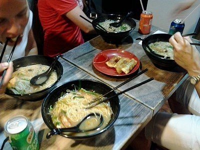 Na oběd jsme zašly do místní restaurace (opravdu restaurace, jako třeba u nás pizzerie), a protože Kája nechtěla rybu ani polévku a podobná jídla, vybrala si crispy chicken s rýží. Když se jí po chvíli Lenka zeptala, zda je spokojená, přežvykujíc sousto odpověděla, že má pocit, že v každém kousku něco chroupe. Ochutnaly jsme a opravdu, byly to kuřecí chrupavky obalované v pikantním těstíčku. Druhá skupina nám večer vyprávěla o svém úžasném kulinářském zážitku v jiné restauraci, kde si dokonce část jídla vařili sami na stole.